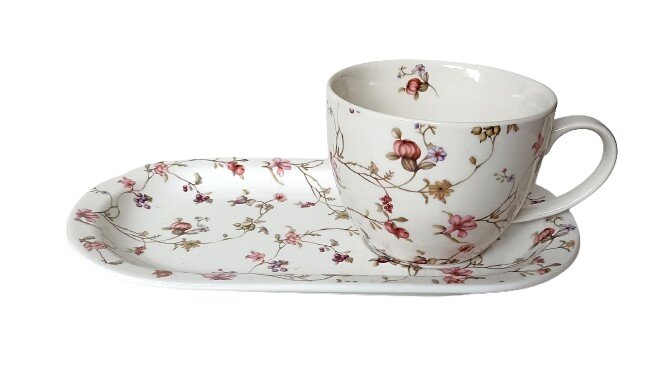 - Ovaalne alustass: Piklik (14,8 x 25 cm) alustass ei toimi mitte ainult kruusialusena, vaid ka kohana küpsistele, croissantile või muudele hommikusöögisuupistetele.