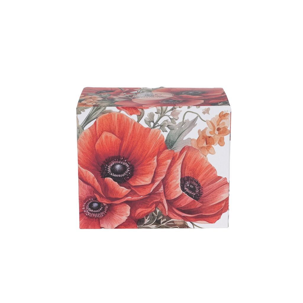 - Moonimotiiv: Pind on kaunistatud eredate punaste moonidega – armastuse ja kire sümboliga. Külluslikud õietoonid kontrasteeruvad metsalillede detailidega, luues harmoonilise ja suvise kompositsiooni.