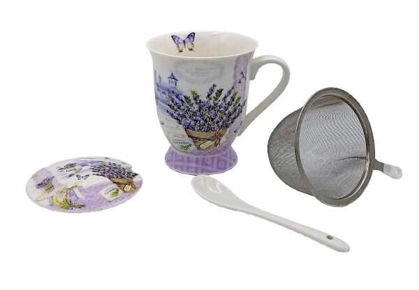 See võluv 350 ml lavendlimotiividega kruus on loodud neile, kes hindavad aeglaseid teejoomise rituaale ja Provence’i stiili esteetikat. See pole lihtsalt jooginõu, vaid täielik komplekt, mis võimaldab lihtsalt ja mugavalt valmistada lemmikut puruteed või ravimtaimi.