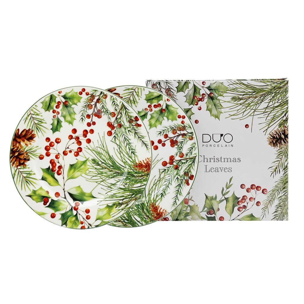 See 2-osaline magustoidutaldrikute komplekt sarjast „Christmas Leaves“ lisab teie lauale loomulikku sarmi ja elegantsi. 19 cm läbimõõduga taldrikud on ideaalne valik pühadedesertide, suupistete või puuviljade serveerimiseks, luues hubase jõuluatmosfääri.