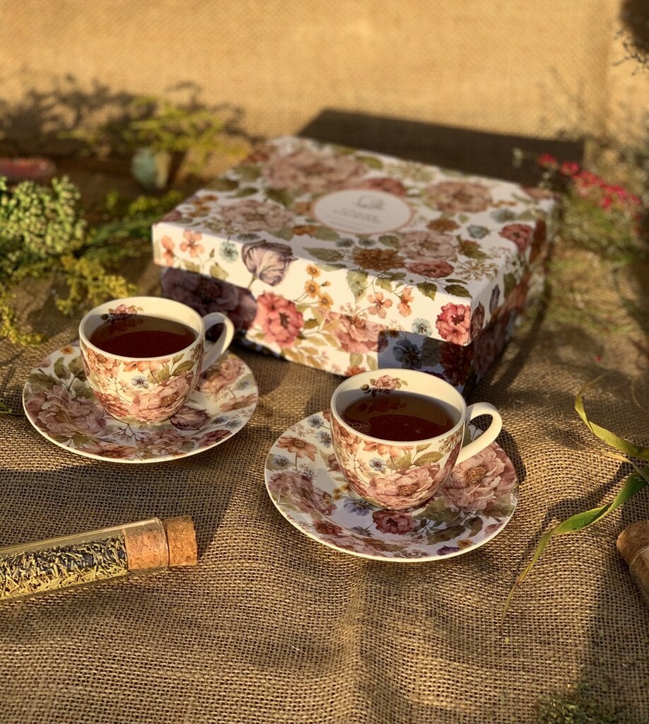 Kogu komplekt on pakitud kaunisse dekoratiivsesse karpi, mille disain kordab nõude motiivi – pastelseid lilli. See on valmis, maitsekas kingitus naistele, meestele, kolleegidele või õpetajatele sünnipäevaks või tänutäheks.