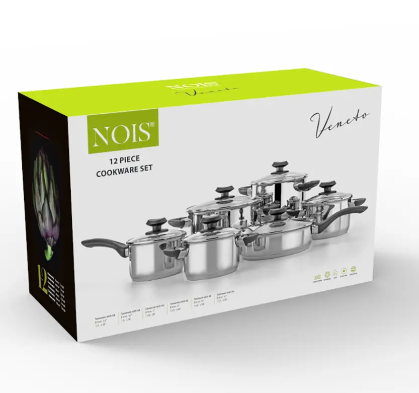 „Nois Veneto“ komplekt sisaldab kogu kööginõude spektrit: alates suurest 6,5 l potist pere lõunasöögiks kuni praktilise praepanni ja kastmepannini. See on ideaalne valik neile, kes hindavad stabiilsust ja turvalisust – kuumenematud käepidemed võimaldavad nõusid tõsta ilma pajakinnasteta ning läbipaistvad aurutusavadega kaaned aitavad hoida ideaalset toiduvalmistamistemperatuuri.