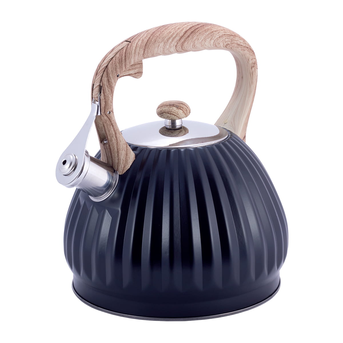 • Ohutus ja mugavus: Mittekuumenev bakeliidist käepide pehme silikoonkattega („soft-touch“) tagab kindla ja ohutu haarde, kaitstes käsi põletuste eest. Integreeritud vile annab valjult märku vee keemahakkamisest.