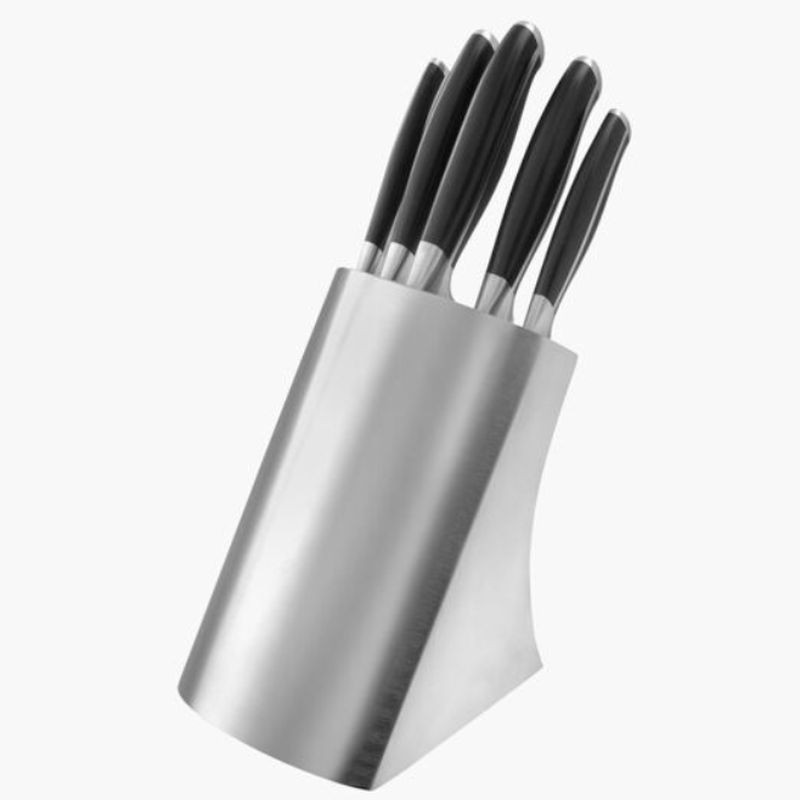 Lõpuks, nagu kirsikookil, on roostevabast terasest noatugi. See noatugi mitte ainult ei hoia teie noad turvaliselt ja korrapäraselt, vaid on ka kaunis dekoratiivne rõhutus teie köögi interjöörile.