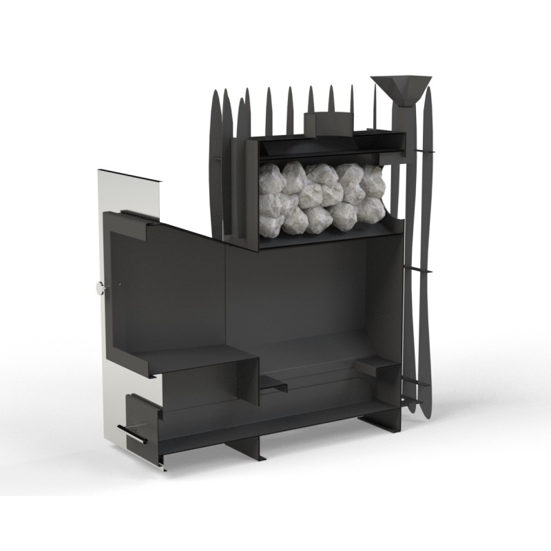 Võrkkorpus võimaldab laduda 2-3 korda rohkem kive. See tähendab, et saun püsib kauem soe ja aur on “pehmem”, kuna kivid varjestavad metalli kuumust.
