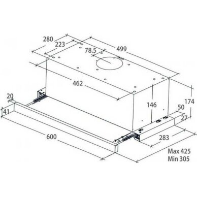 Kappi paigaldatav 60 cm laiune teleskoopne (väljatõmmatav) õhupuhasti, mis on mõeldud aurude ja lõhnade kogumiseks. Sobib töötama nii õhu väljatõmbe kui ka re-tsirkulatsiooni režiimides.