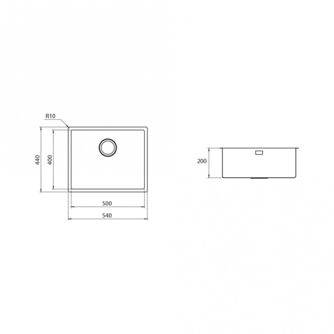 Kõrge kvaliteediga, 54×44 cm suurune roostevabast terasest valam, mis on mõeldud paigaldamiseks tööpinnale altpoolt. Ideaalne modernsesse kööki, eriti kivimassi, kvartsi või täispuidust tööpindadega.