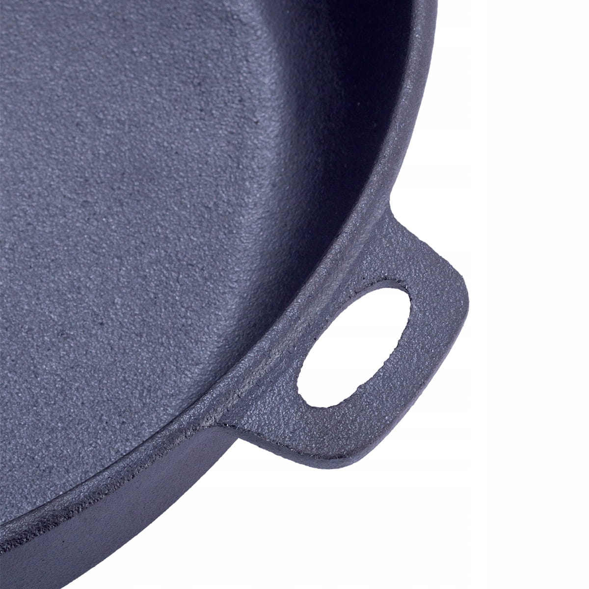 - Mugav käepide: Roostevabast terasest käepide tagab kindla ja stabiilse haarde, mis on raske malmnõu puhul eriti oluline.