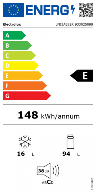 - Külmiku / sügavkülmiku maht: 94 l / 16 l