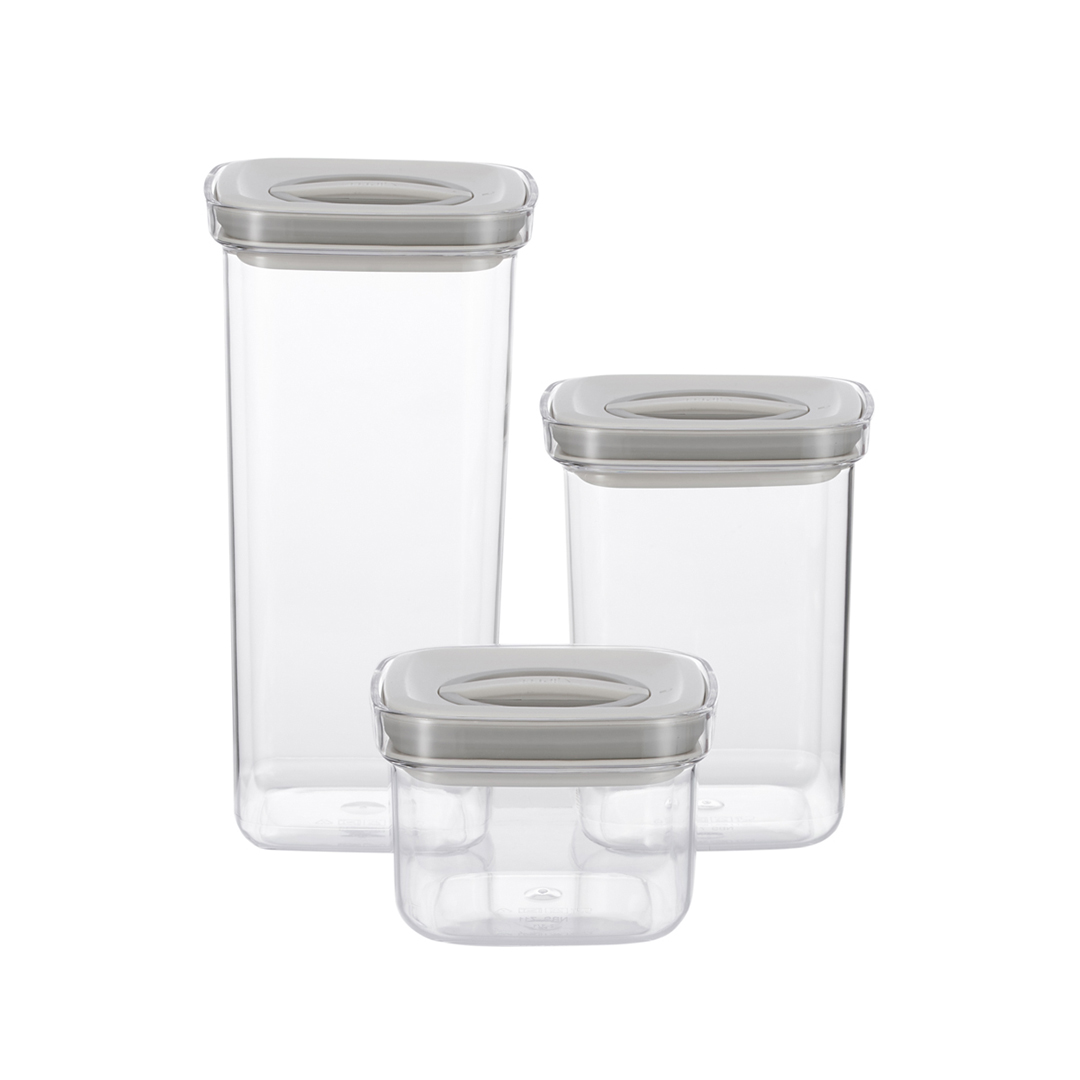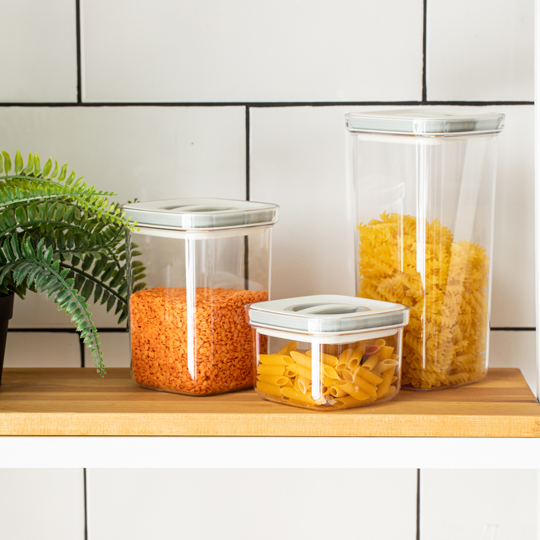 Konteinereid on mugav kasutada köögis teraviljade, müslide, suhkru ja teiste teravate toiduainete jaoks – vaakumkaas kaitseb võõraste lõhnade ja niiskuse eest. Plastkonteinerite komplekt koos tiheda kaanega on kaunis, kompaktne ja praktiline lahendus teie köögile.