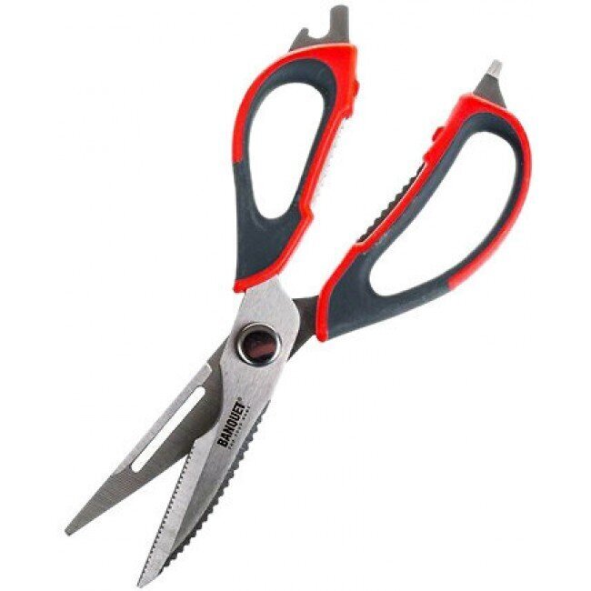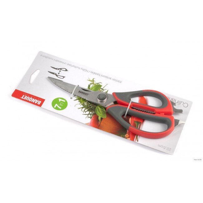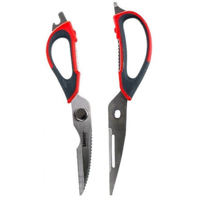 “Banquet Culinaria” köögikäärid on tõeline mitmeotstarbeline abiline. Selle asemel, et hoida sahtlis seitset erinevat tööriista, võite kasutada neid universaalseid kääre, mis on valmistatud kvaliteetsest roostevabast terasest ja vastupidavast plastist.