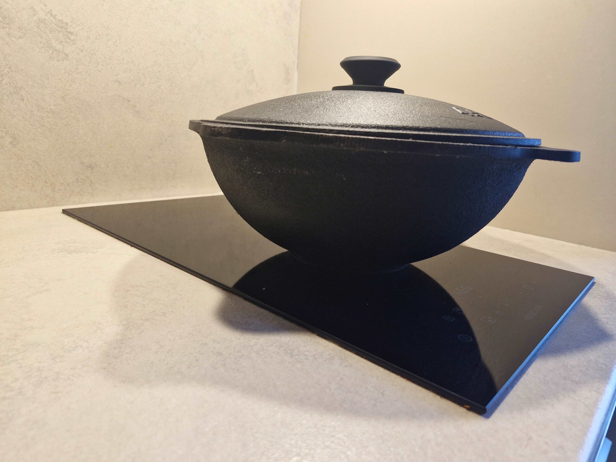 Kas seda kazani saab kasutada induktsioonpliidil? Jah, tänu lamedale põhjale ja malmi magnetilistele omadustele sobib see suurepäraselt induktsioonpliitidele.