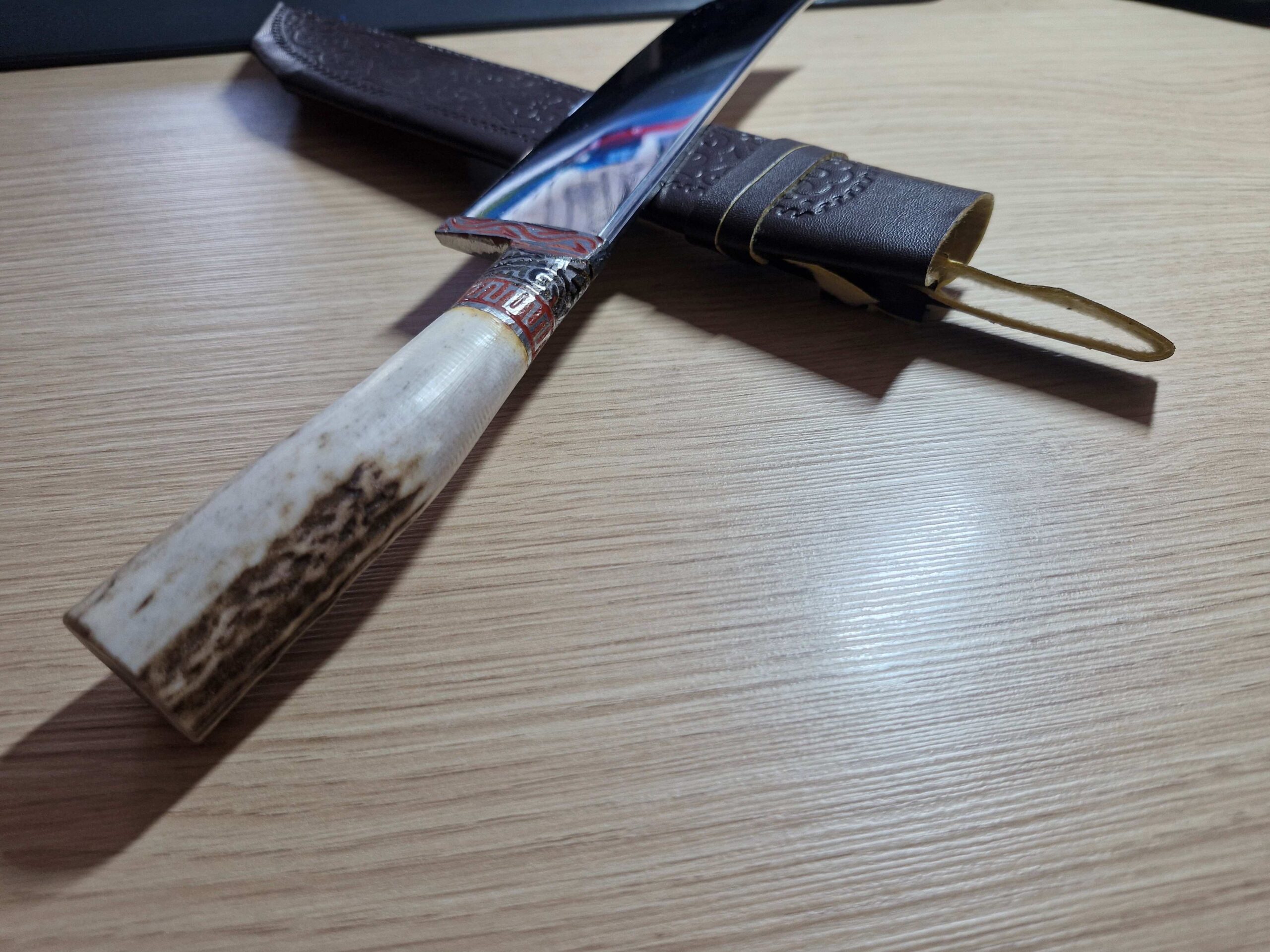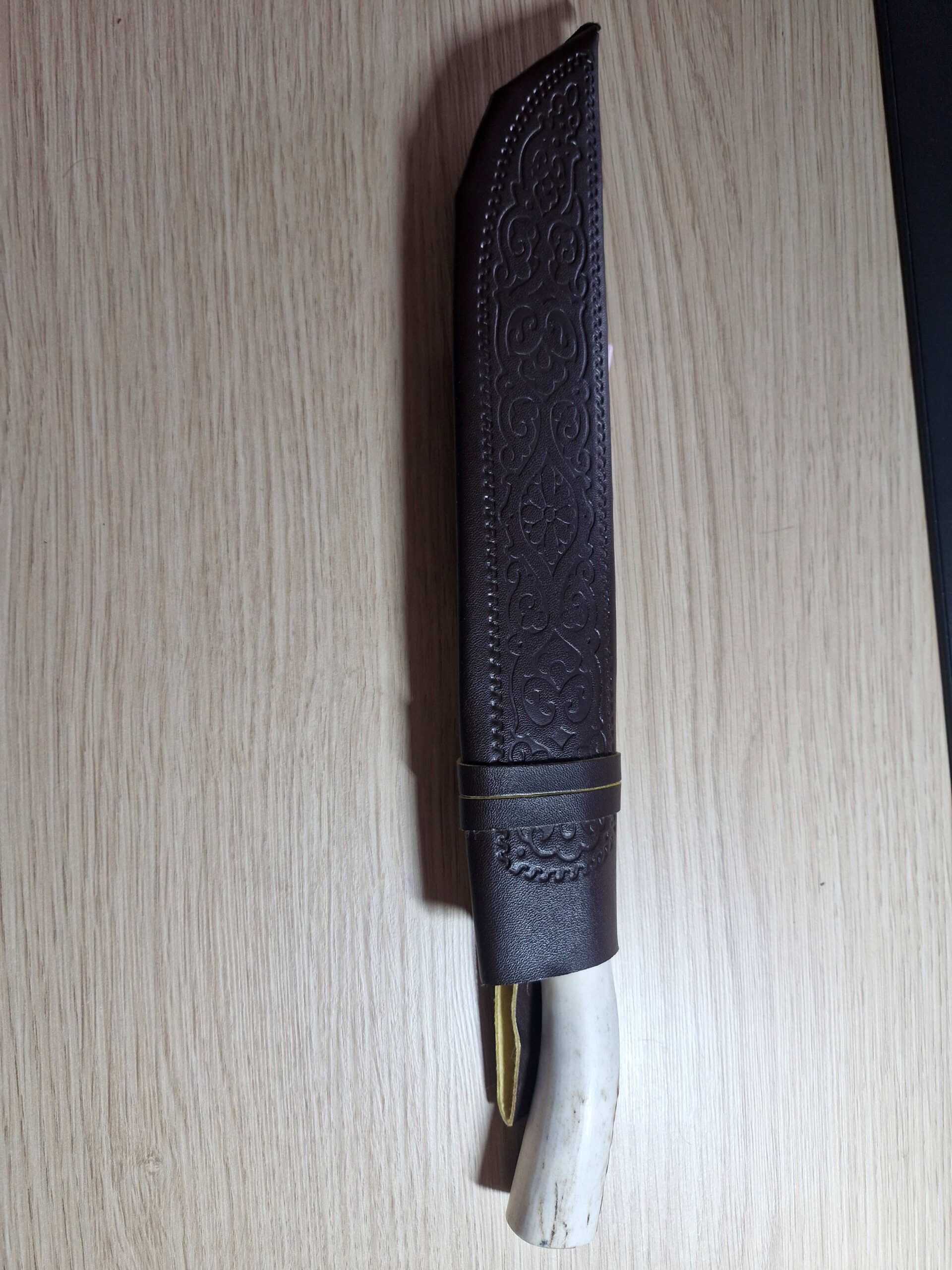 * Autentne disain: Kaunistatud traditsiooniliste ornamentidega ja komplektis naturaalsest nahast tupp.