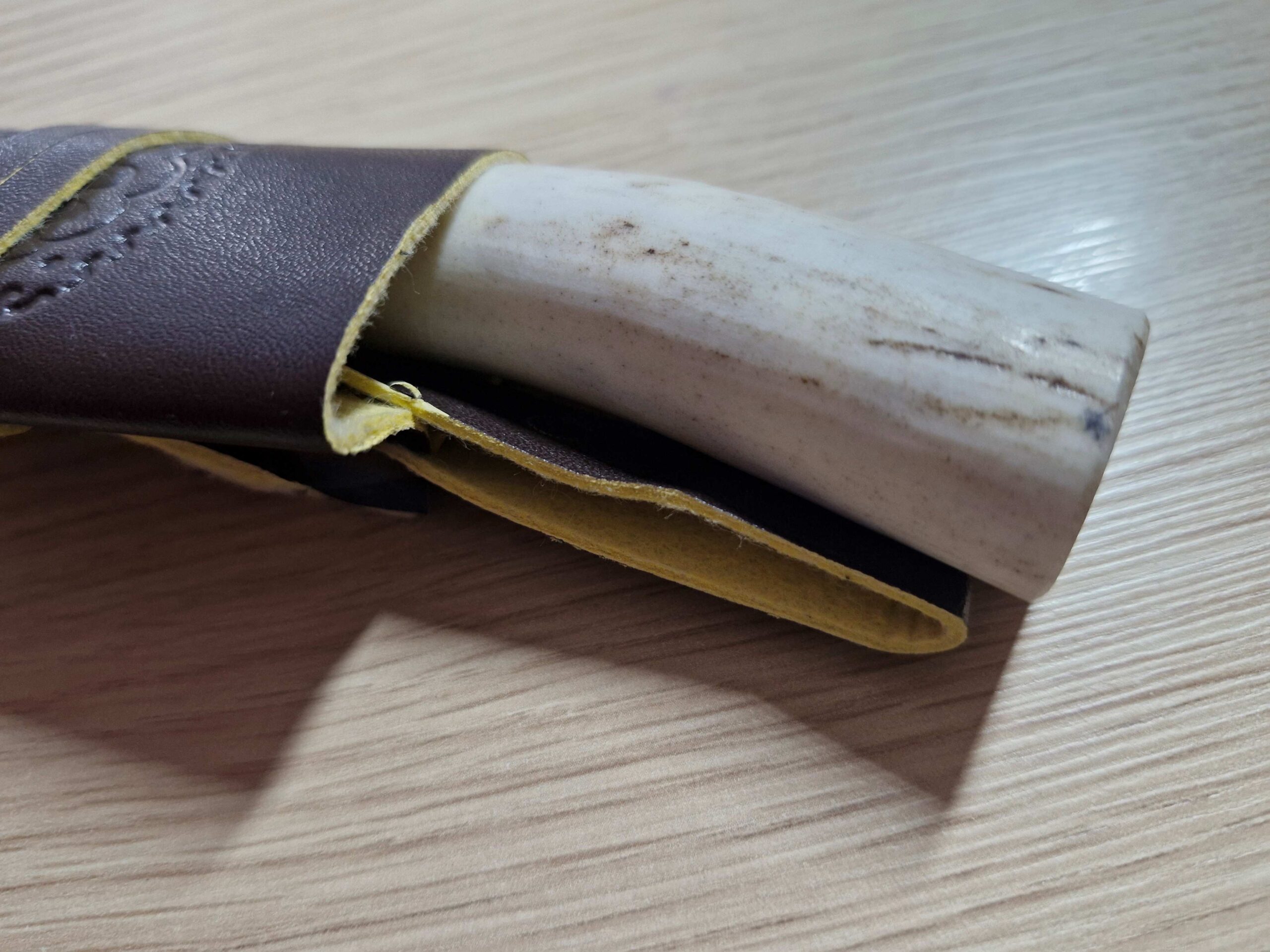 * Käepide: Naturaalne hirve-, metskitse- või veisesarv.