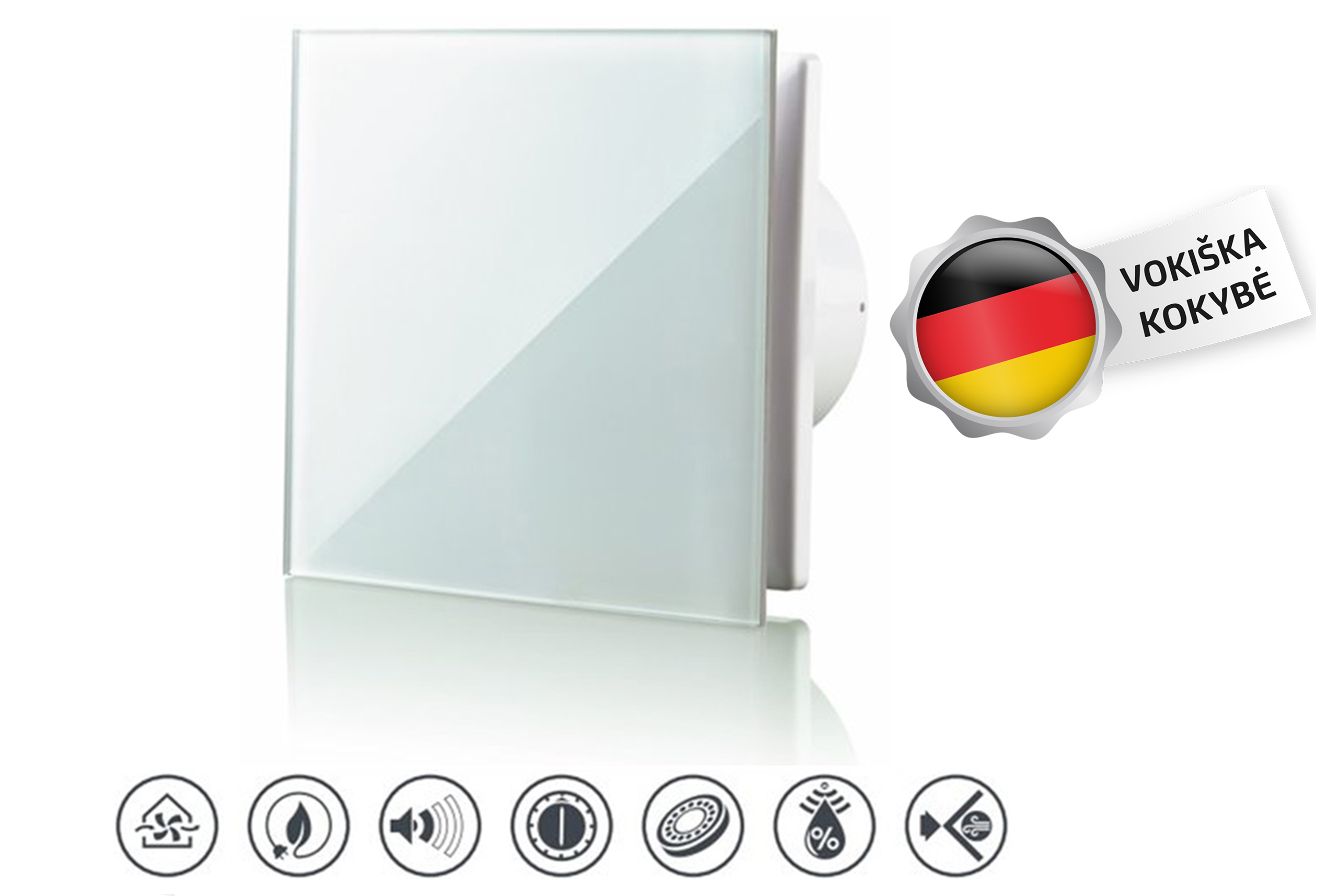 „Vlano“ (Saksamaa) toodetud innovaatilised väljatõmbeventilaatorid „A-GLAS“ tavakomplektatsiooniga, taimeriga või niiskusanduriga ja taimeriga. Neid ventilaatoreid kasutatakse vannitubade, duširuumide, köökide ja muude eluruumide pidevaks ja perioodiliseks ventilatsiooniks. See ventilaator võlub ka oma modernse ja esteetilise disainiga, komplektis on valge klaasist esipaneel. Kaasaegne ventilaatori elektroonika ja integreeritud funktsioonid toetavad head sisekliimat. See väljatõmbeventilaator on energiasäästlik ja vaikne, tarbides vaid 17 W elektrienergiat (sõltuvalt komplektatsioonist). Hooldusvaba kuulvarustusega mootor. Kuullaagritega mootoril on pikk kasutusiga. Loodud pidevaks tööks ja ei vaja mingit hooldust. Sellesse ventilaatorisse on integreeritud tagasilöögiklapp, mis paigaldatakse selleks, et vältida õhuvoolu tagasitõmbamist ruumi või soojuskadusid, kui ventilaator on ooterežiimis või välja lülitatud. Kõrge kaitseklassiga IP 44 ventilaatoreid kasutatakse niiskete ruumide (vannitoad, basseinid, leiliruumid…) ventilatsiooniks. Kodumajapidamiste väljatõmbeventilaatoreid „A-GLAS“ kasutatakse elamutes, korterites, eramajades; kontorites; abiruumides; kaubandusruumides; restoranides, tervishoiuasutustes, lastehooldusasutustes. Vlano A-GLAS TH mudel: T – sisseehitatud väljalülitusviivitusega reguleeritav taimer, mis võimaldab ventilaatoril töötada 2 kuni 30 minutit pärast väljalülitamist. H – kui niiskustase ruumis ületab anduris seatud vahemiku 60-90%, lülitub ventilaator automaatselt sisse ja töötab seni, kuni niiskustase ruumis normaliseerub; seejärel töötab ventilaator taimeris seatud aja ja lülitub siis välja. „VLANO“ tooted vastavad kõrgeimatele rahvusvahelistele kvaliteedistandarditele, mis tagavad, et selle kaubamärgi tooted teenivad teid pikalt teie köögis. Meie insenerid arendavad pidevalt uusi tehnoloogiaid ja parandavad Vlano toodete tehnilisi võimalusi, et täiustada selle kaubamärgi mudelite valikut.