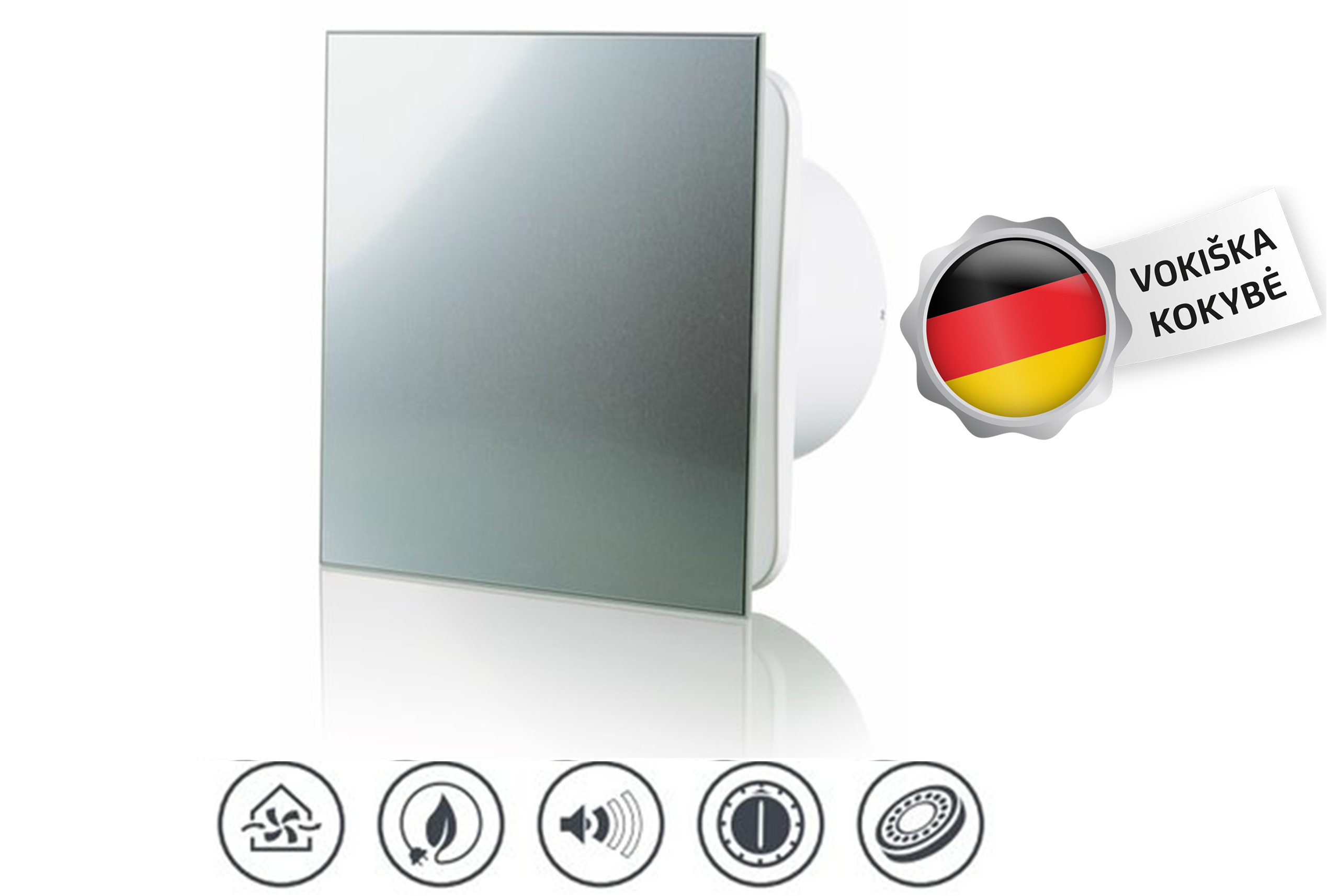 „Vlano“ (Saksamaa) toodab innovatiivseid väljatõmbeventilaatoreid „Vlano S-125 T“ taimeriga. Neid ventilaatoreid kasutatakse vannitubade, duširuumide, köökide ja muude eluruumide pidevaks ja perioodiliseks ventilatsiooniks. See ventilaator võlub ka oma moodsa ja esteetilise disainiga, komplekti kuulub matt alumiiniumist esipaneel. Ventilaatori kaasaegne elektroonika ja integreeritud funktsioonid tagavad hea mikrokliima ruumides. S-125 T mudel: • T – sisseehitatud väljalülitusviivitusega reguleeritav taimer, mis võimaldab ventilaatoril töötada 2 kuni 30 minutit pärast väljalülitamist. See väljatõmbeventilaator (S-125 T) on energiasäästlik ja vaikne (29 dB), tarbib vaid 8 W elektrit, maksimaalne õhuvool on koguni 147 m³/h. Hooldusvaba kuullaagritega mootor. Kuullaagritega mootoril on pikk tööiga. Loodud pidevaks tööks ja ei vaja hooldust. Kodused väljatõmbeventilaatorid „S-125 T“ on kasutusel eluruumides, korterites, eramutes; kontorites; abiruumides; kaubanduspindadel; restoranides, tervishoiuasutustes, lastehoiuasutustes. „VLANO“ tooted vastavad kõrgeimatele rahvusvahelistele kvaliteedistandarditele, mis tagavad, et selle kaubamärgi tooted teenivad teid pikalt teie köögis. Meie insenerid arendavad pidevalt uusi tehnoloogiaid ja parandavad Vlano toodete tehnilisi võimalusi, et täiustada selle kaubamärgi mudelivalikut.