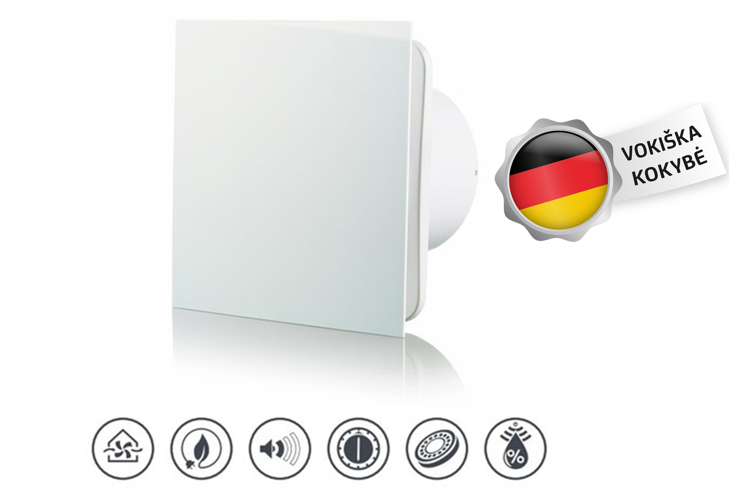 „Vlano“ (Saksamaa) toodab innovaatilisi väljatõmbeventilaatoreid „Vlano S-125 TH“ koos taimeri ja niiskusanduriga. Neid ventilaatoreid kasutatakse vannitubade, duširuumide, köökide ja teiste eluruumide pidevaks ja perioodiliseks ventilatsiooniks. See ventilaator võlub ka oma moodsa ja esteetilise disainiga, komplekti kuulub valge esipaneel. Kaasaegne ventilaatori elektroonika ja integreeritud funktsioonid toetavad head sisekliimat ruumides. S-125 TH mudel: • T – sisseehitatud väljalülitusviivitusega reguleeritav taimer võimaldab ventilaatoril töötada 2 kuni 30 minutit pärast väljalülitamist. • H – kui ruumi niiskustase ületab anduris seatud vahemiku 60–90%, lülitub ventilaator automaatselt sisse ja töötab seni, kuni ruumi niiskustase normaliseerub; seejärel töötab ventilaator taimeris seatud aja ja lülitub välja. See väljatõmbeventilaator (S-125 TH) on energiasäästlik ja vaikne (29 dB), tarbides vaid 8 W elektrit, maksimaalne õhuvool on isegi 147 m³/h. Hooldusvaba kuullaagrimootor. Kuullaagritega mootoril on pikk kasutusiga. Loodud pidevaks tööks ja ei vaja mingit hooldust. Koduseid väljatõmbeventilaatoreid „S-125 TH“ kasutatakse eluruumides, korterites, eramutes; kontorites; abiruumides; kaubanduspindadel; restoranides, tervishoiuasutustes, lastehoiuasutustes. „VLANO“ tooted vastavad kõrgeimatele rahvusvahelistele kvaliteedistandarditele, mis tagab, et selle kaubamärgi tooted teenivad teie köögis kaua. Meie insenerid arendavad pidevalt uusi tehnoloogiaid ja parandavad Vlano toodangu tehnilisi võimalusi, et täiustada selle kaubamärgi mudelite valikut.