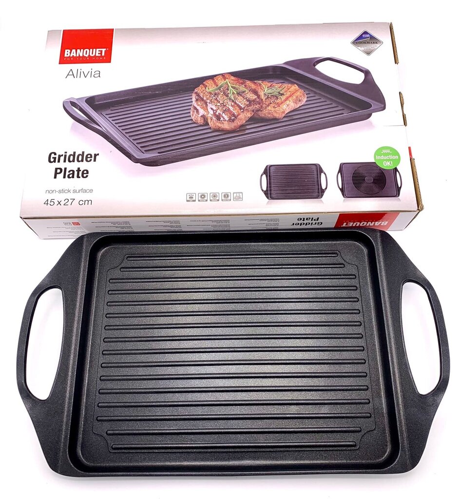 See universaalne 45×27 cm grillpann-plaat on loodud neile, kes soovivad nautida täiuslikke steike, köögivilju või kala mitte ainult suvel, vaid igal aastaajal. Valmistatud kvaliteetsest valualumiiniumist, ühendab see panni ja küpsetusplaadi eelised, pakkudes vabadust katsetada.