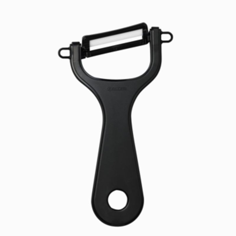 Vertikaalne puu- ja köögiviljade koorija Kyocera koos keraamiliste teradega. Proovige seda koorijat ja hindate kohe selle eeliseid – keraamilised terad on väga teravad, kunagi ei roosteta ja kooritud puu- või köögivilja koor on väga õhuke,