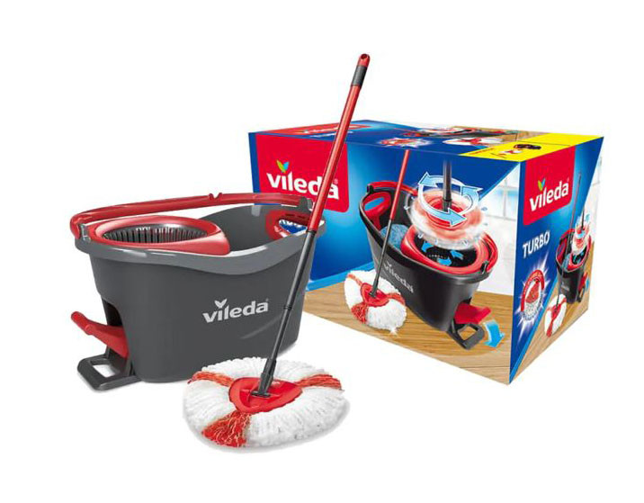 Olete tüdinenud vaevalisest põrandate pesemisest, käte leotamisest määrdunud vees ja raskesti väänavast mopist? VILEDA Easy Wring & Clean TURBO komplekt muudab selle ebameeldiva töö kiireks ja lihtsaks protsessiks. Uuenduslik süsteem jalgpedaaliga võimaldab teil täielikult kontrollida mopi niiskust, määrimata ja kastmata käsi.
