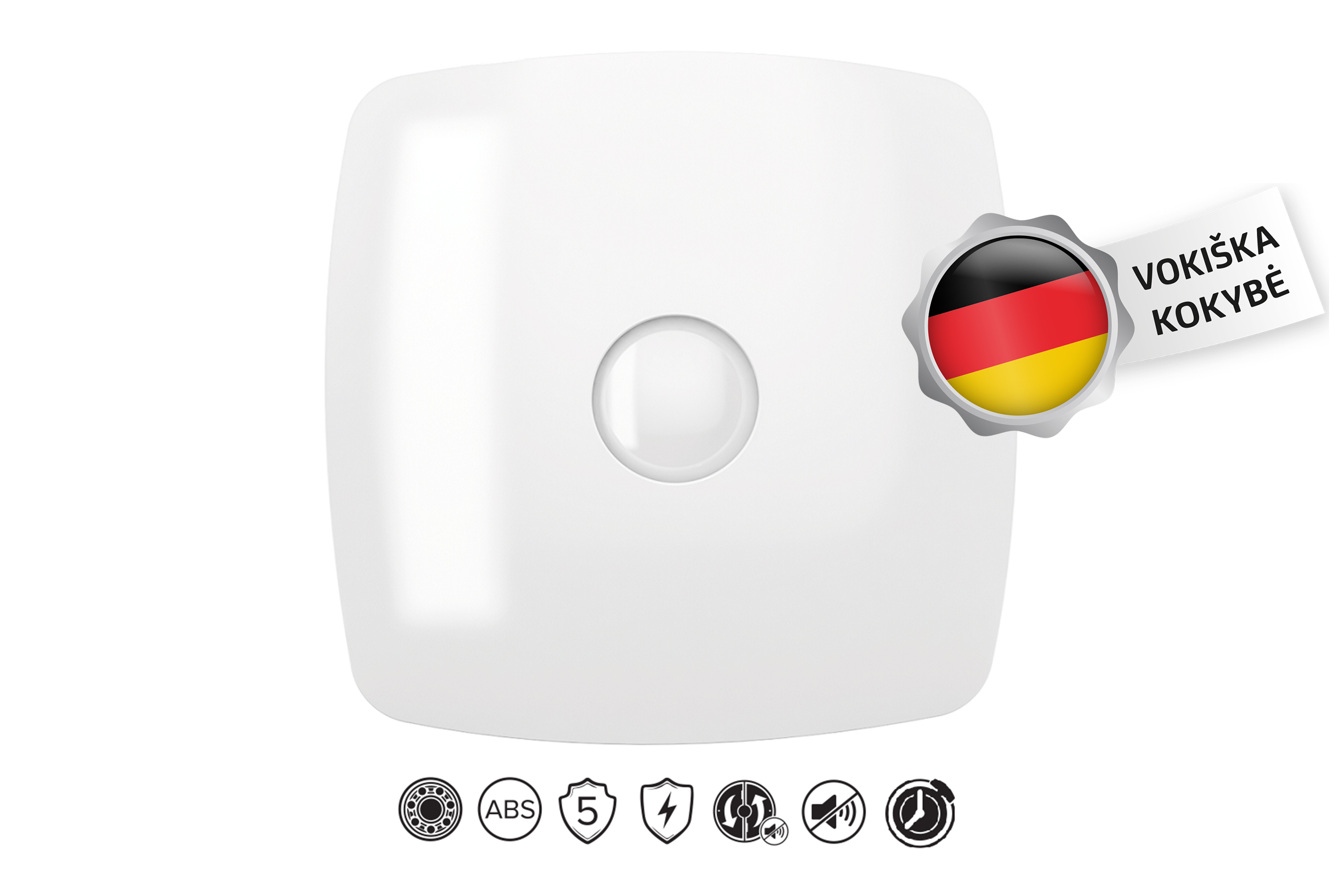 Integreeritud väljalülitustaimer (T): Ventilaator töötab 15 sekundist kuni 45 minutini pärast seda, kui olete valgustuse välja lülitanud. See tagab, et niiske õhk ja lõhnad eemaldatakse isegi pärast ruumist lahkumist.