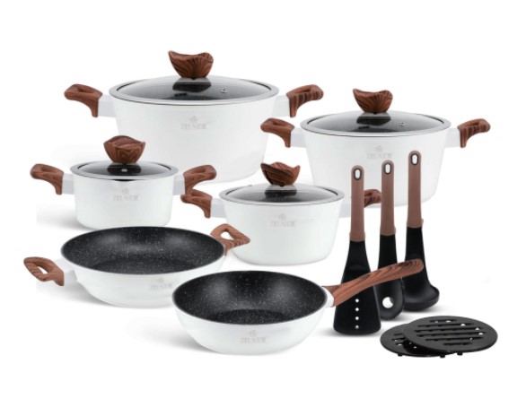 - Kaunis 15-osaline kvaliteetsete pottide komplekt, mis on kaetud tugeva graniitkattega.