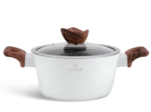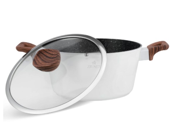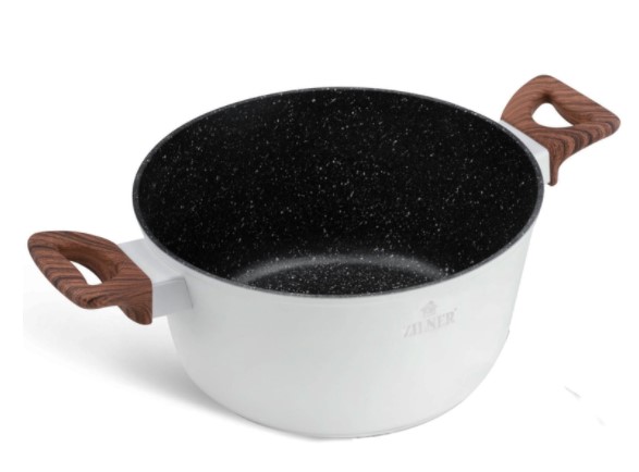 Graniitkatte ja mitmekihilise põhjaga pottide komplekt, mis sobib suurepäraselt nii induktsioon- kui ka tavapliitidele. Marmorist pottidel on kaaned ja käepidemed, mis ei kuumene.