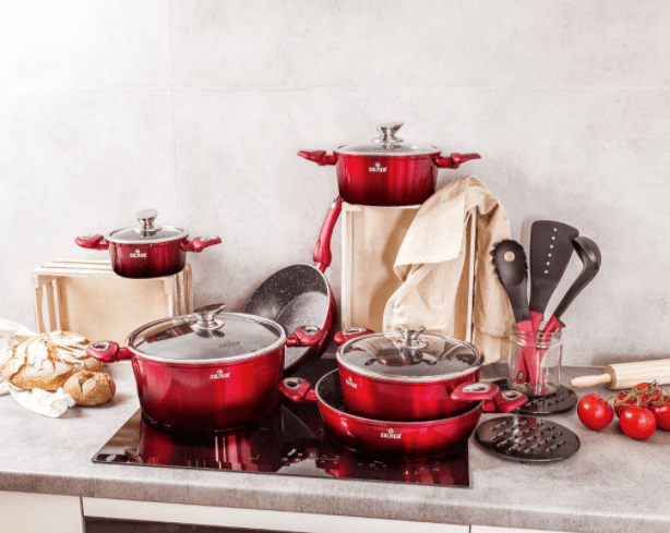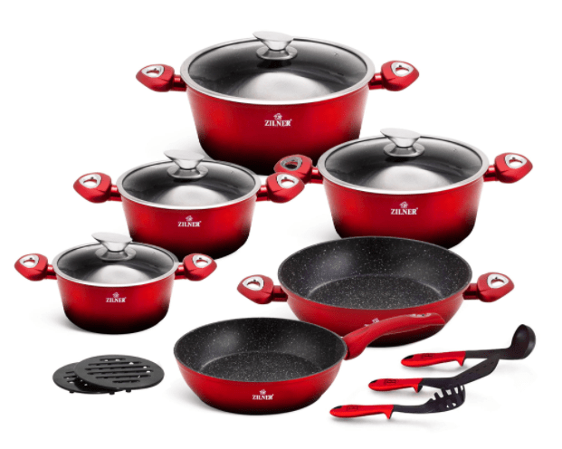 15-osaline esmaklassiline kööginõude komplekt ZILNER ZL-8520 graniidist mittenakkuva kattega.
